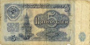 В СССР купюра 5 рублей печаталась в виде государственного казначейского билета и выпускалась практически регулярно. Выпуск купюр перестал осуществляться лишь с 1991 года, в связи с вспыхнувшей инфляцией.